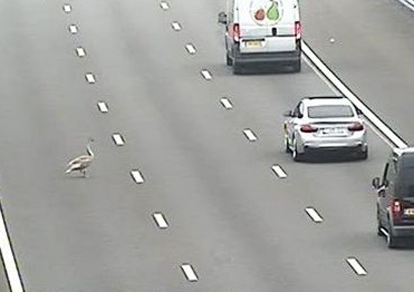 Eerder op de ochtend liep er ook een zwaan rond op de A12.
