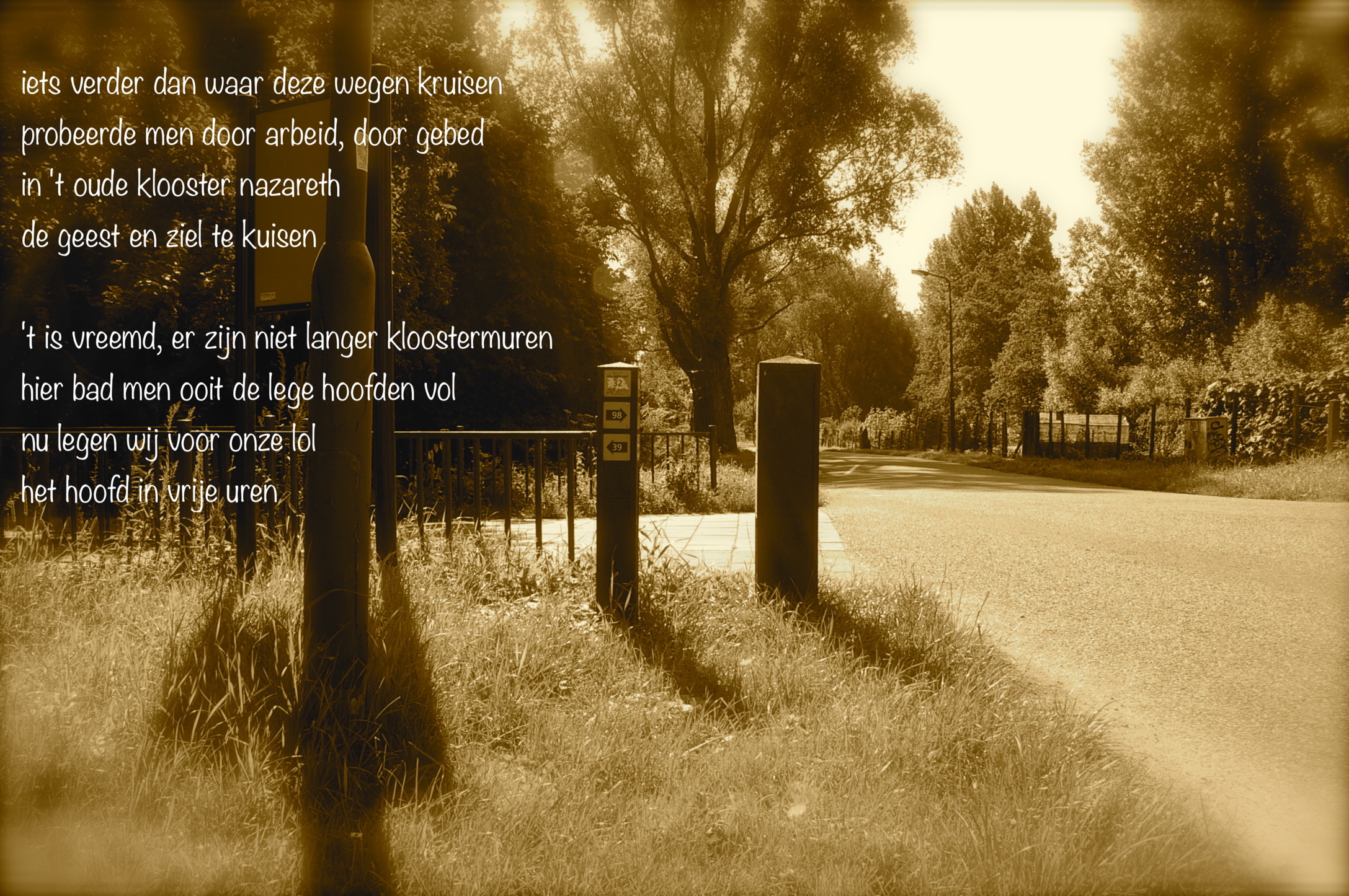 Ton: ‘laten we elkaar in nieuwegein bijstaan. dagelijks een beeld met gedicht. als we niet naar buiten kunnen, halen we buiten naar binnen toe. ik probeer in deze moeilijke tijd, deze blijf-thuis periode een beeldverslag te maken van mijn fietsrondje. een keer wat anders voor de lezers. natuurlijk wel met een gedicht.’