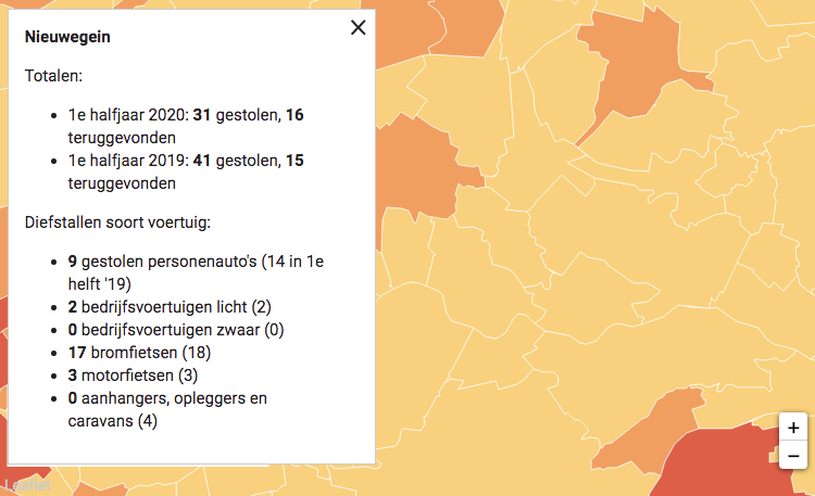 In Nieuwegein werden in het eerste halfjaar van 2019 nog 41 voertuigen gestolen, in het eerste halfjaar van dit jaar tien minder. De teller bleef steken op 31. 16 daarvan werd dit jaar teruggevonden, in 2019 waren dat er 15.