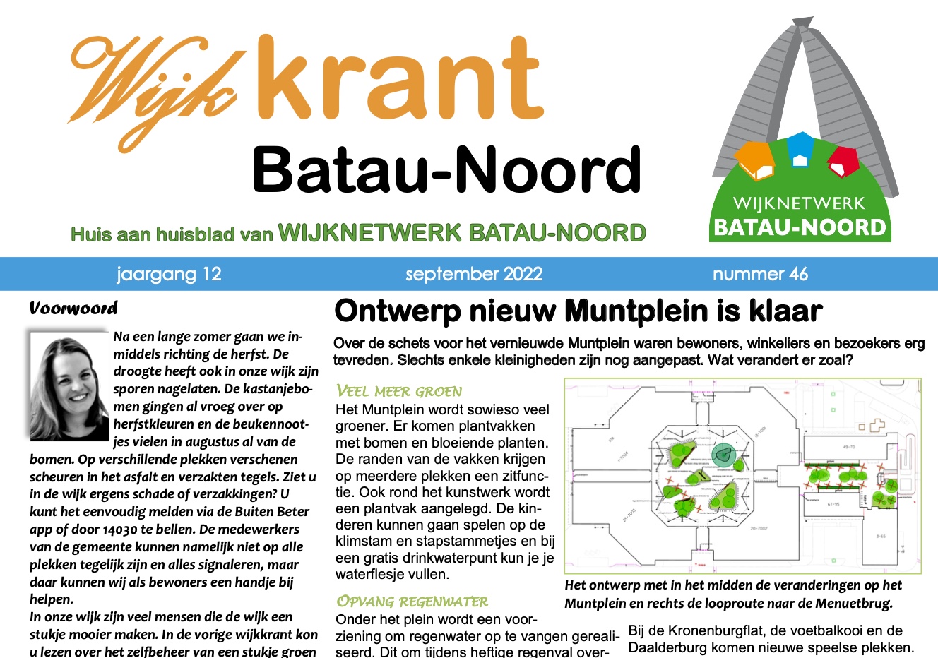 De wijkkrant voor de bewoners in Batau-Noord is weer uit. Mocht u hem gemist hebben, kwijtgeraakt zijn of gewoon even op uw computerscherm willen lezen, de wijkkrant van uw buurt staat hier nu ook altijd on-line. U vindt overigens hier al het verdere nieuws over uw wijk.