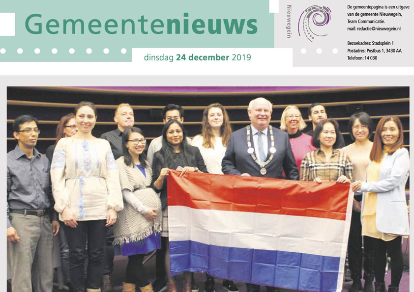13 Inwoners van Nieuwegein kregen maandag 16 december jl. officieel het Nederlandse staatsburgerschap tijdens een ceremonie op de Nationale Naturalisatiedag. Deze ceremonie is de laatste stap in het proces voor het krijgen van de Nederlandse nationaliteit.