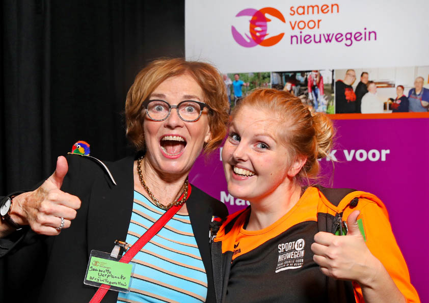 Jeanette Verplancke (links) van het Vrijwilligershuis heeft een mooie match gemaakt met Caroline van der Helm (rechts) van SportID.