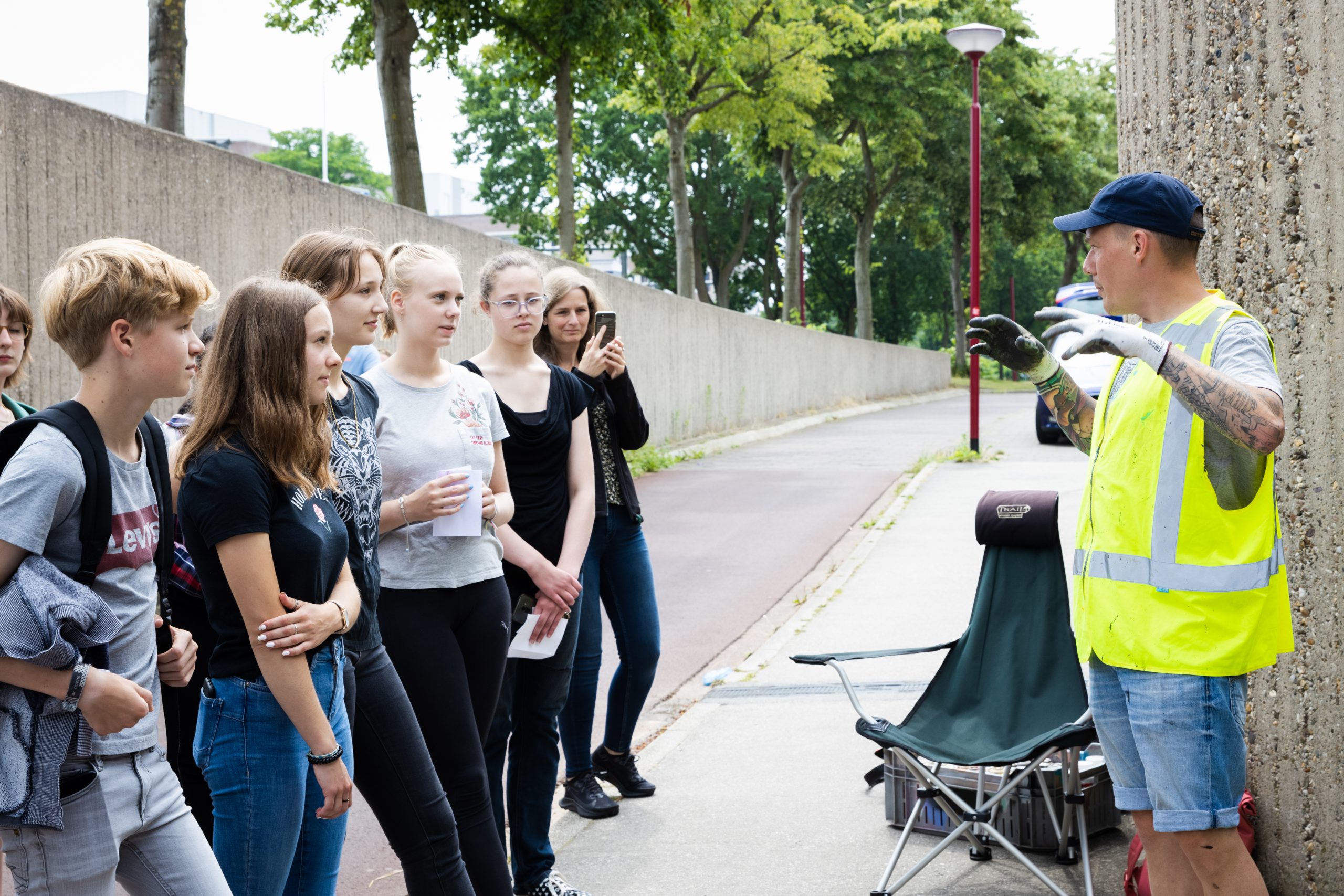 Leerlingen van het Anne van Rijn College geconcentreerd aan het werk in de Kolfstedetunnel. Foto’s: Maartje Kuperus
