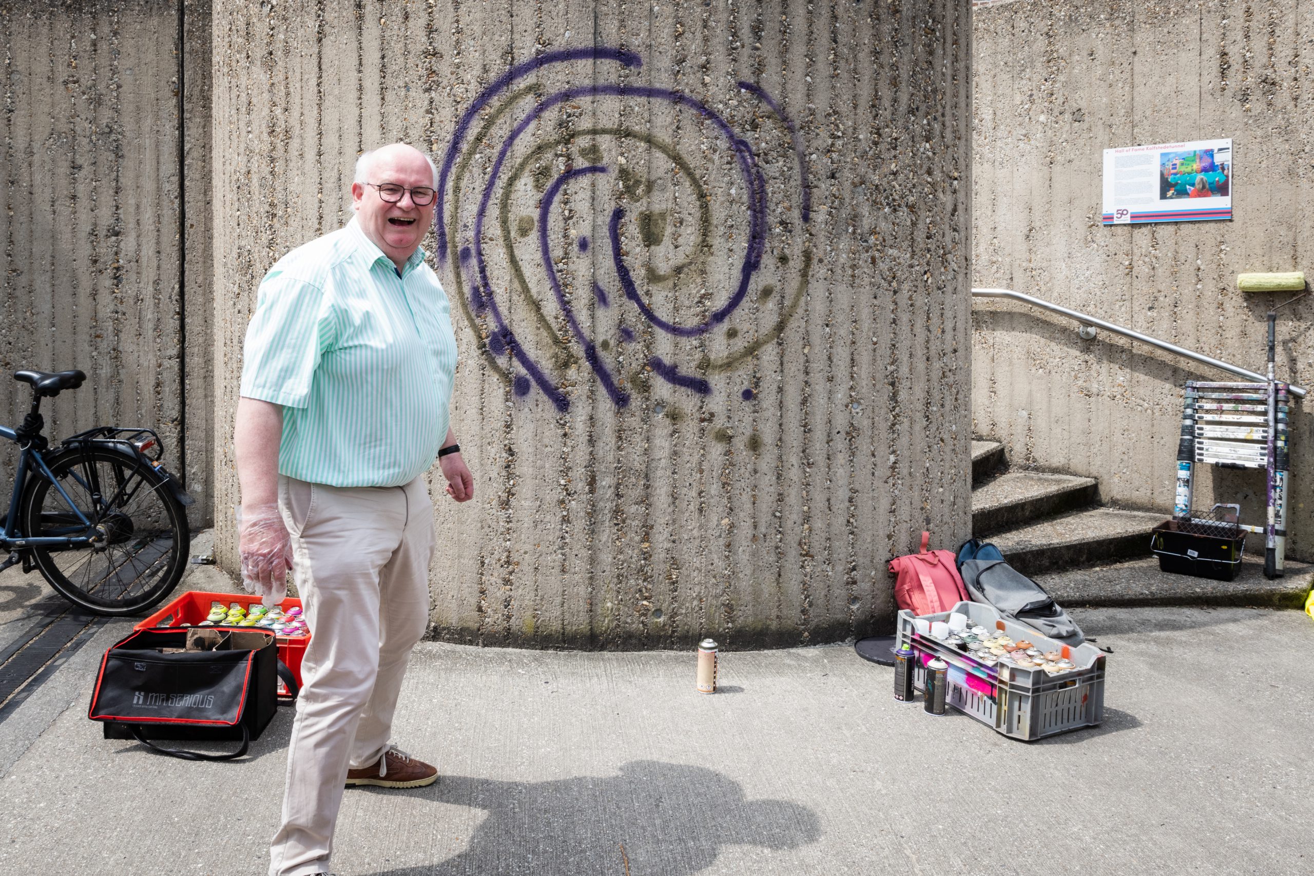 Burgemeester Frans Backhuijs en Wethouder John van Engelen waren ook aanwezig bij de opening. Wethouder John van Engelen reageert met trots: ‘Het is prachtig om te zien hoe de leerlingen zo creatief bezig zijn. Het is een mooi en blijvend cadeau ter herinnering aan het 50-jarig bestaan van Nieuwegein.’ Op de foto ziet u burgemeester Frans Backhuijs.