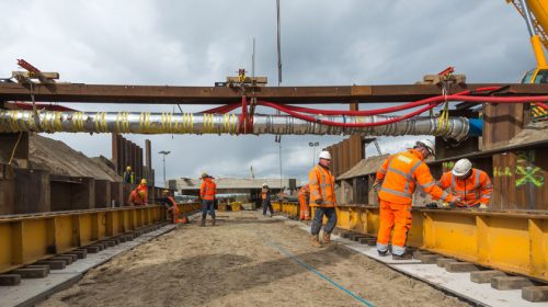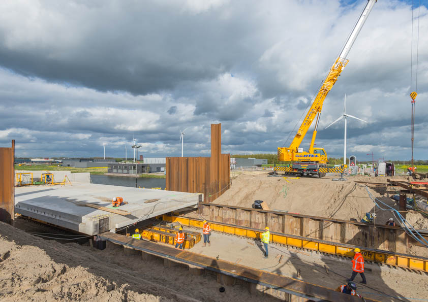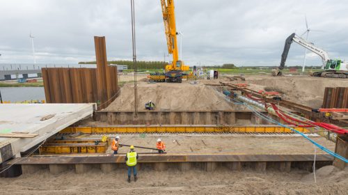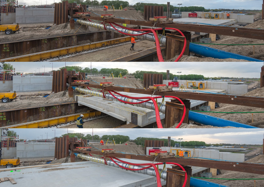 Afgelopen weekend zijn de werkzaamheden bij de Prinses Beatrixsluis prima verlopen. Sas van Vreeswijk legt in opdracht van Rijkswaterstaat een nieuwe tunnel onder het Waterliniedok door aan. Dit is nodig vanwege de verbreding van het Lekkanaal. Het inschuiven van het 600.000 kilo zware tunneldek gebeurde zaterdagavond. Dat gebeurde over een speciale schuifbaan over een lengte van 26,6 meter met een snelheid van 6,5 meter per uur. Het Waterliniedok lag daarvoor op deze plek dit weekend helemaal ‘open’, het weggedeelte op deze plek was helemaal afgegraven.