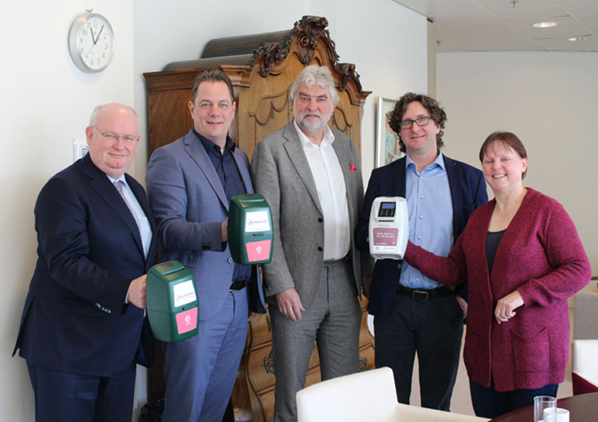 Tijdens de Beursvloer Nieuwegein afgelopen november, heeft het Reumafonds Nieuwegein een deal gesloten met het college van burgemeester en wethouders voor de aftrap van de collecteweek van het Reumafonds. Els Voerman mocht vanmorgen met de collectebussen langs bij het (bijna) voltallige college van B&W om de eerste donaties in ontvangst te nemen.