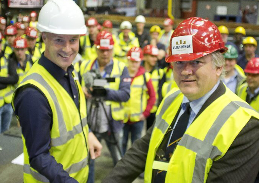 V.l.n.r. directeur Arthur Janssen van Vlietjonge Staalhandel en wethouder Johan Gadella