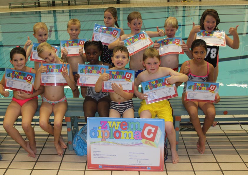 Zondag 29 oktober en woensdag 1 november 2017 was het enorm spannend voor een grote groep kinderen. Onder aanmoediging van ouders, broertjes, zusjes,opa’s en oma’s, zwommen zij af voor het eerste, tweede of derde diploma van het zwem-ABC. Alle kinderen deden enorm hun best.