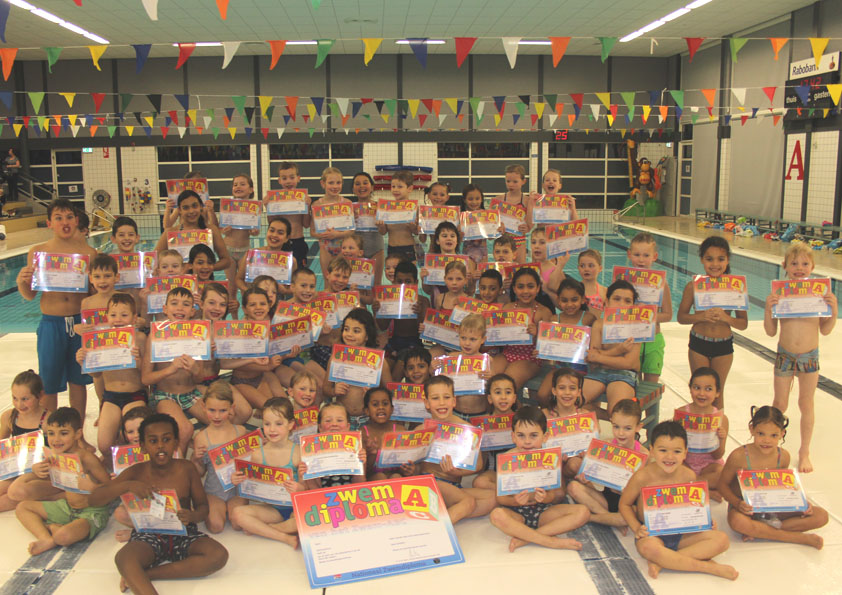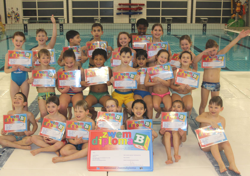 Woensdag 25 januari en woensdag 1 februari 2017 werd er afgezwommen voor het B en A diploma en was het enorm spannend voor een grote groep kinderen. Onder aanmoediging van ouders, broertjes, zusjes,opa’s en oma’s, zwommen zij af voor het tweede diploma van het zwem-ABC, namelijk het A en B – diploma. Alle kinderen deden enorm hun best. Het resultaat was dat iedereen is geslaagd! Op de foto’s onder dit bericht de trotse kinderen met hun diploma A en B.