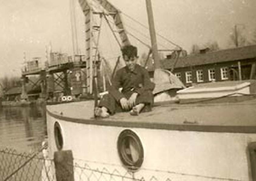 prikkeldraad. Als kleine jongen viste hij graag. Ook iets wat hij nu veel doet. Teus is hartpatient en vindt zijn ontspanning nog steeds in het vissen. De ark heeft Teus Jr. zijn vader gekocht ergens in Brabant medio 1957. Hij herinnert zich nog dat de ark over de Waal moest naar Jutphaas en dat er hoge golfen waren. Zijn vader, Teus Treffers Sr. besloot om aan te meren voor de Zuidersluis, tegenover boerderij Doornekamp, die daar Toen zat. Nu zit daar kwekerij de Lelie. Het was 1957. Bijna twee jaar lang lagen zij daar bij de Zuidersluis, zonder hinder te hebben van wie dan ook. Maar medio augustus 1958 kwam daar verandering in en lezen we in een ander kranten artikel van eind 1958 met de volgende grote kop: ‘Onhoudbare situatie voor de Jutfase woonarkbewoners.’