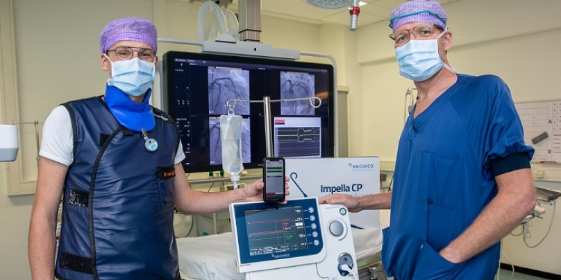 Het wordt ingezet bij patiënten met ernstig acuut hartfalen, of die een ingreep aan het hart ondergaan met een groot risico. In het eerste geval is de Impella vaak ter overbrugging naar een permanente oplossing, in het tweede verkleint het de kans op fatale afloop bij een behandeling. ,,We hebben al meermaals meegemaakt dat iemand die gedotterd werd een hartstilstand kreeg. De pomp nam het direct helemaal over. Die patiënt bleef zelfs gewoon praten. Zonder de Impella had hij het anders waarschijnlijk niet overleefd,” zegt Van Kuijk die voor de implementatie van de verbindingsfunctie nauw samenwerkte met onder meer intensivist Erik Scholten.
