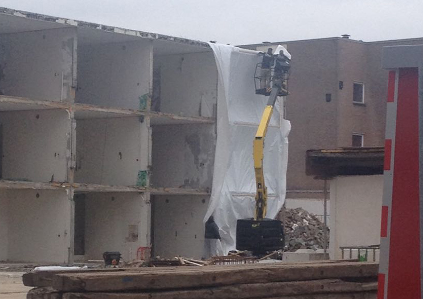 De gemeente Nieuwegein laat onze redactie weten: ‘Het gaat om asbeststroken tussen de aanhechting van de wanden en de vloeren. De sloper had een methode gevonden om het resterende asbest af te voeren. Deze methodiek blijkt echter in de praktijk niet te voldoen. Daarom is de sloper zelf gestopt met de sloopwerkzaamheden en nu op zoek naar een andere methode om het asbest te verwijderen.’