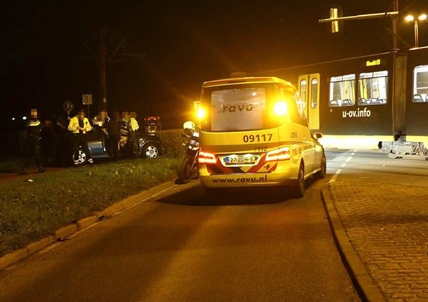 De bestuurder die afgelopen zaterdagavond in botsing kwam met de sneltram in Nieuwegein, heeft de aanrijding zelf veroorzaakt. Hij wilde nog even snel door rood de trambaan oversteken. Hij had weinig geluk, de tram greep de auto in de zijflank en achter hem stond een politieagent die alles voor zijn neus zag gebeuren.