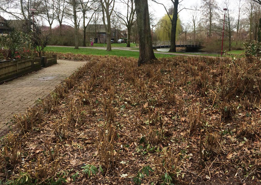 De bewoners zien graag dat de bosjes weggehaald worden en het gras weer tot aan het pad voor de deur te laten lopen met een laag hekje tegen fietsers. ‘Het overige gras moet toch al gemaaid worden. Dit dit kost de gemeente dan ook niet extra onderhoud, zoals het laag houden van deze stekelbosjes in onze woonwijk.’