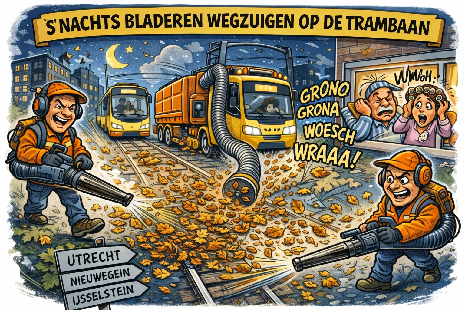 Op diverse trajecten op de trambaan van Utrecht, Nieuwegein en IJsselstein worden bladeren naast en tussen de trambaan opgezogen. De werkzaamheden worden gedaan in de nachten van 23 tot en met 26 januari. Het werk wordt gedaan met bladblazers en kunnen geluidshinder veroorzaken.