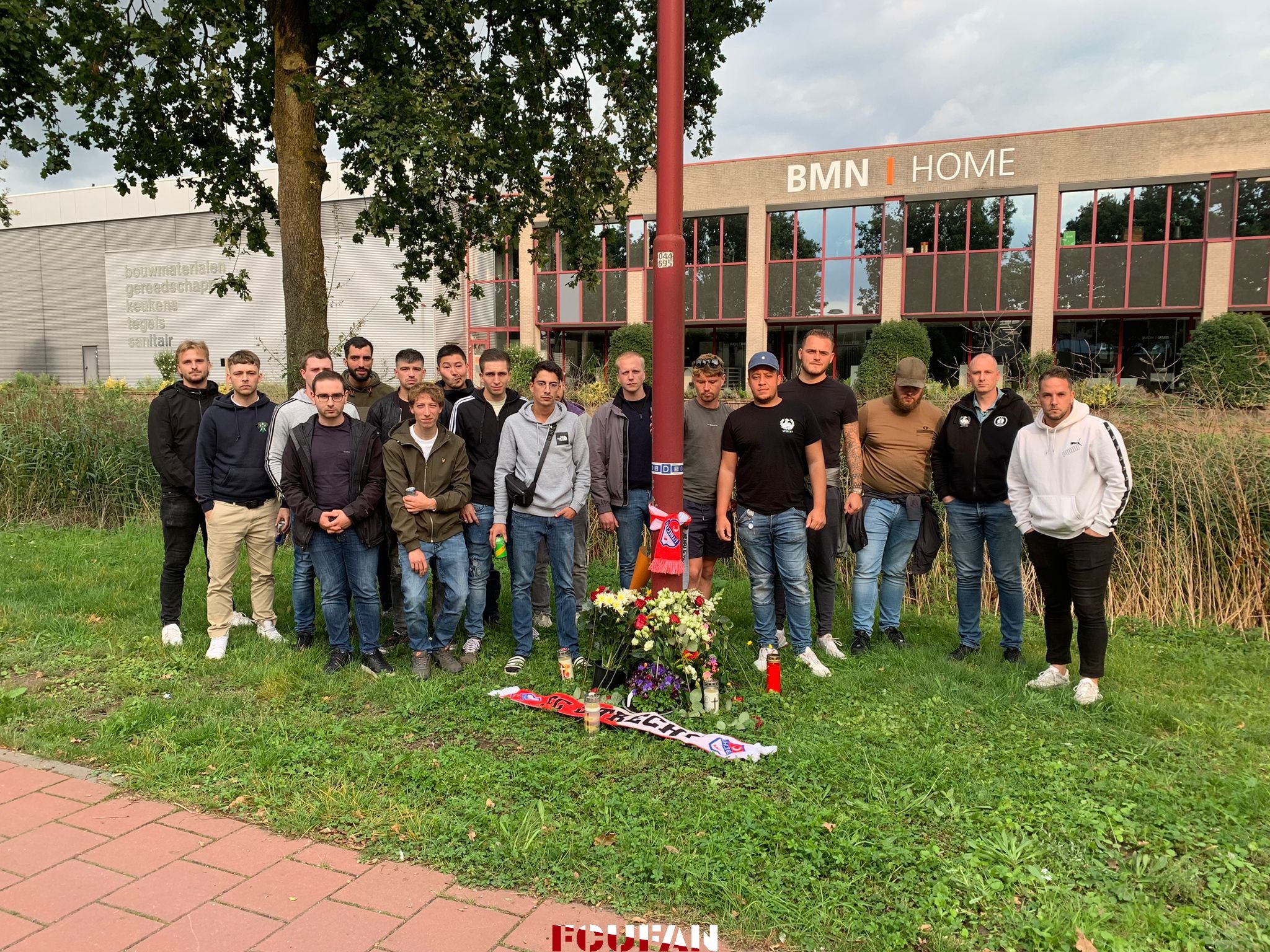 Vrienden van het slachtoffer hebben bloemen en sjaals van FC Utrecht neergelegd op de plek van het ongeluk. DE overleden man was als supporter vaak te vinden op de Bunnikside in de Galgenwaard, waar de harde kern zit.