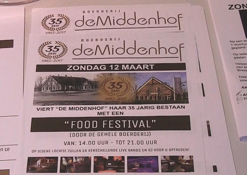Met een heus ‘Food Festival’ viert Boerderij ‘De Middenhof’ op zondag 12 maart aanstaande haar 35-jarig bestaan. Tijdens deze dag zal van 14.00 uur tot 21.00 uur verschillende Live Bands en DJ’s optreden en zult u feestelijk worden ontvangen met een amuse en bubbels van het huis. Boerderij ‘De Middenhof’ is gevestigd in de wijk Zuilenstein aan de Duetlaan 1-3 in Nieuwegein.