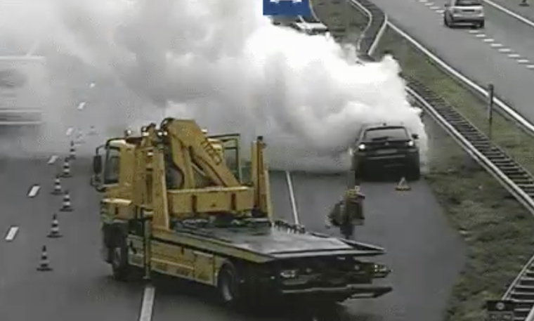 De brandweer, die snel ter plekke was, kon niet voorkomen dat de auto geheel uitbrandde. Er zijn geen gewonden gevallen. Vanwege de rook werd het verkeer naar 1 baan geleid.