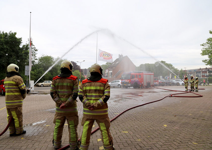Vandaag vond de vijfde nationale herdenking plaats van 91 brandweercollega’s die sinds 5 mei 1945 zijn omgekomen in Nederland. Ook de brandweer in Nieuwegein stond stil bij de moed en daadkracht van de brandweercollega’s die tijdens de uitoefening van het vak het leven lieten. De vlag werd halfstok gehesen op de kazerne aan de Nevelgaarde en om 13.00 uur werd een ereboog gemaakt met twee brandweerspuiten waarvan de stralen elkaar gedurende 1 minuut kruisden. Dit werd gelijktijdig gedaan met de jaarlijkse herdenking bij het Nationaal Brandweermonument in Arnhem.