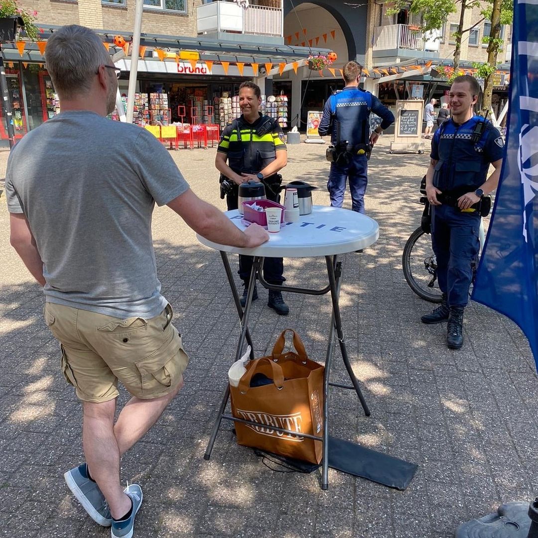 Afgelopen dinsdag stond wijkagente Batau, Janien Haars samen met wijkcoördinator van de gemeente, Bas Meijer en de wijkBOA’s op het Muntplein tijdens ‘Coffee met een Cop.’