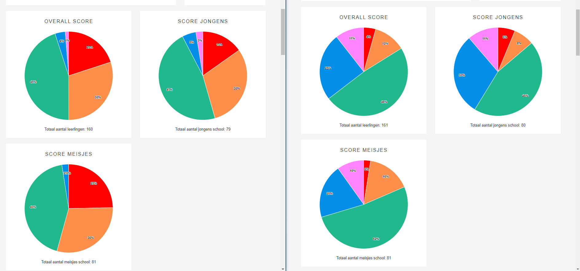 ‘Zie de afname van de rode vlakken (ruim onder gemiddeld) en de toename van de blauwe (boven gemiddeld) en roze vlakken (ruim bovengemiddeld) in de grafiek. Ik hoop in de toekomst dat alle basisscholen in Nieuwegein de MQ-scan laat afnemen.’