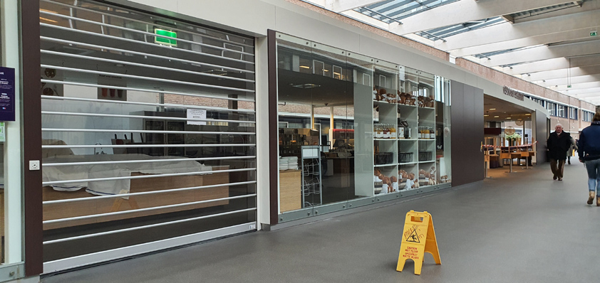 Bij Karwei staat een streep op de grond. Daar moet je achter blijven als je wilt afrekenen. Ook mag er geen handcontact zijn. Geld moet met een zetje richting de kassière. Zij heeft de smoor in. Het is een drama, en ze verwacht dat Karwei binnenkort ook dicht gaat. Het is wel veel drukker dan anders. ‘Iedereen is aan het klussen geslagen.’ Dit lijkt me qua omzet een prettig bericht, maar dat is aan haar gezicht niet af te lezen.