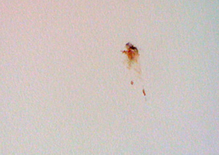 Ik loop er voorzichtig heen, breng de dubbelgevouwen krant in stelling, wacht even en sla onverbiddelijk toe. ‘Ik heb hem.’ ‘Mooi,’ zegt T. ‘maar, er zit nu wel een vlek op de muur. Doe nu maar het licht uit.’ Tien minuten later hoor ik weer gezoem. ‘Zeg, hebben we niet nog ergens een spuitbus?’