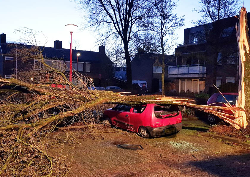 In Nederland werden vannacht windstoten gemeten tot 100 kilometer per uur, in Cabauw (gemeente Lopik) werd zelfs windkracht 9 geregistreerd, meldt Weeronline.
