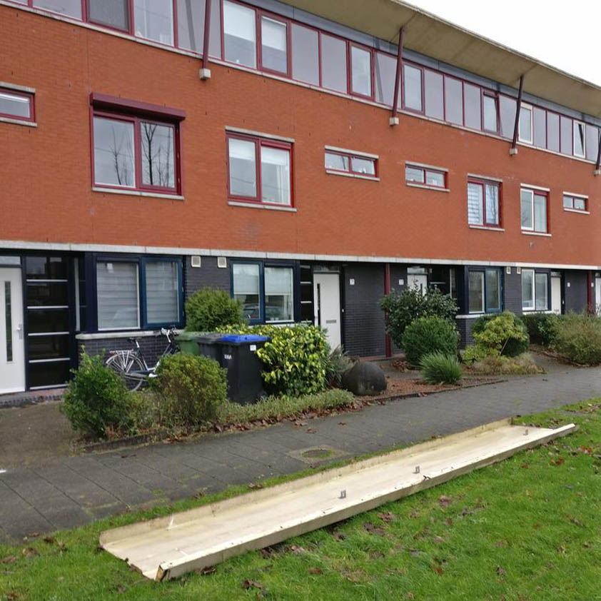 Momenteel raast een storm over Nieuwegein. De afgelopen nacht zijn meerdere takken van bomen gevallen en vanmorgen rond 11.40 uur kwam een dakplaat naar beneden van een woning aan de Pieter de Hooghage. Niemand raakte hierbij gewond.