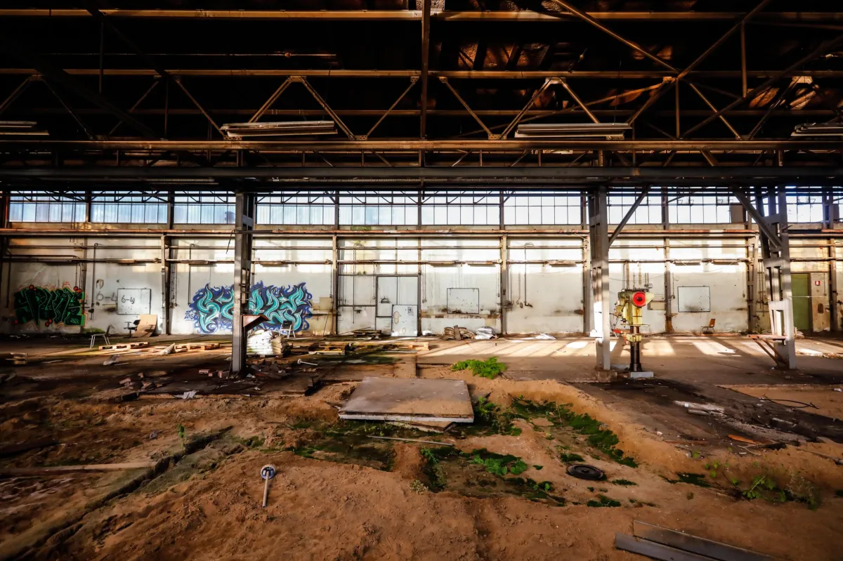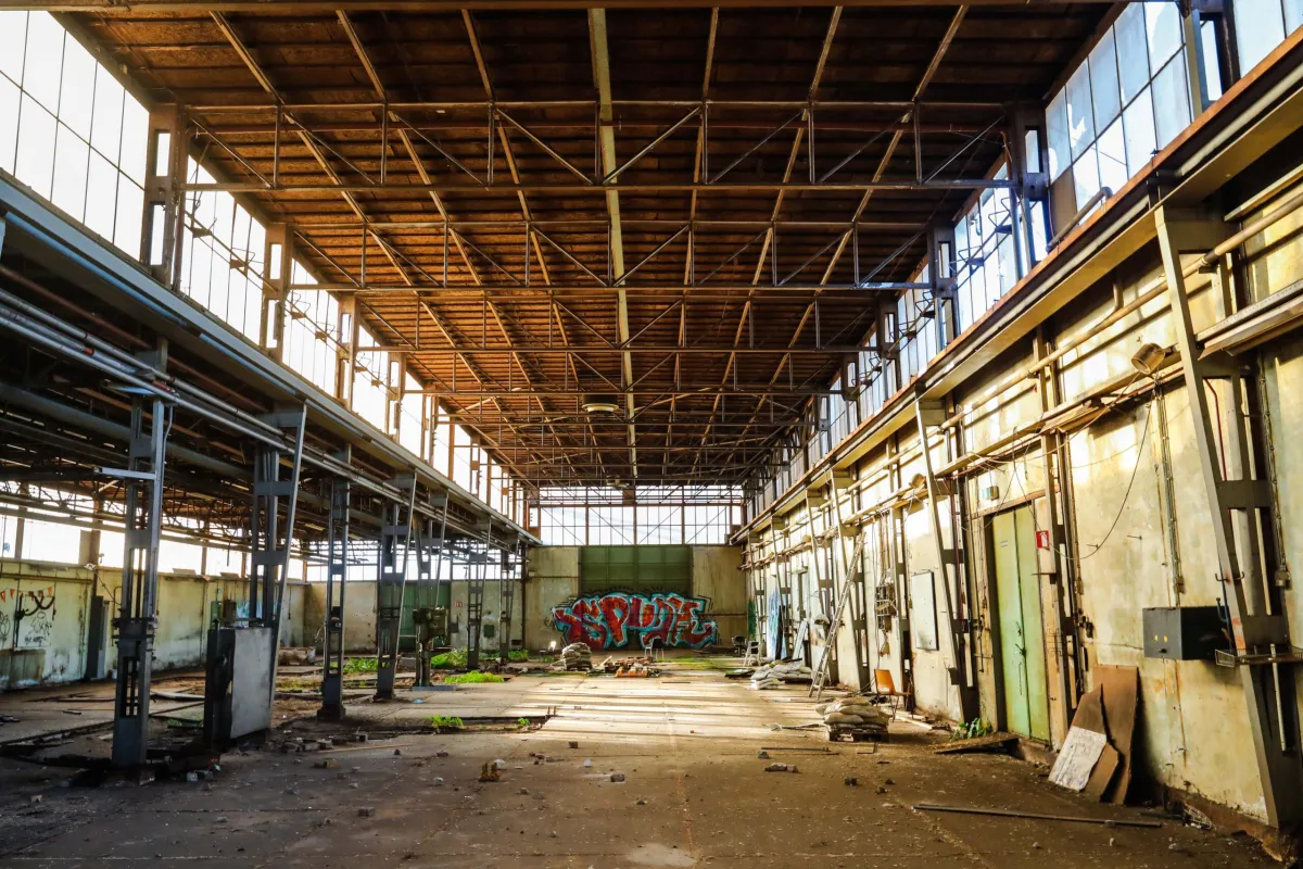 Maar de wereld veranderde. Bedrijven verhuisden, de stad groeide, en waar ooit staal werd geslepen, bleef stilte over. Het fabrieksterrein verouderde en delen stonden leeg. Toch bleef het gebouw overeind — stevig, herkenbaar en met een industrieel charisma dat zeldzaam is geworden in de moderne stad.