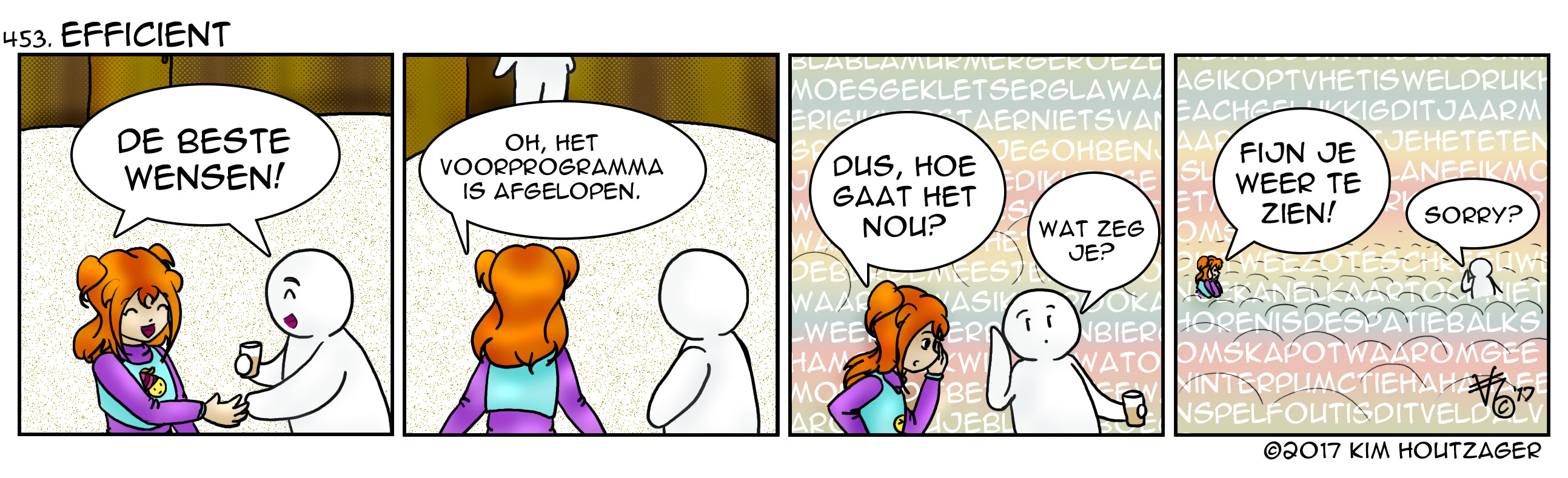 Kim: ‘Zodra het nieuwe jaar begint, beginnen ook weer de nieuwjaarsrecepties. Ik ga al jaren naar de receptie van de gemeente en heb ook al een aantal locaties mee mogen maken. Vorig jaar kon ik niet, dus dit jaar voor het eerst de receptie in De Kom meegemaakt. Jeetje, wat was het druk! Om het efficienter te maken, waren er een aantal nieuwjaarsrecepties tegelijkertijd. Voordeel: je hoeft er maar één keer uit en je ontmoet ook eens mensen die je anders nooit ziet. Nadeel: het is wel heel erg druk. Ik wist niet dat zoveel mensen naar nieuwjaarsrecepties gingen…’