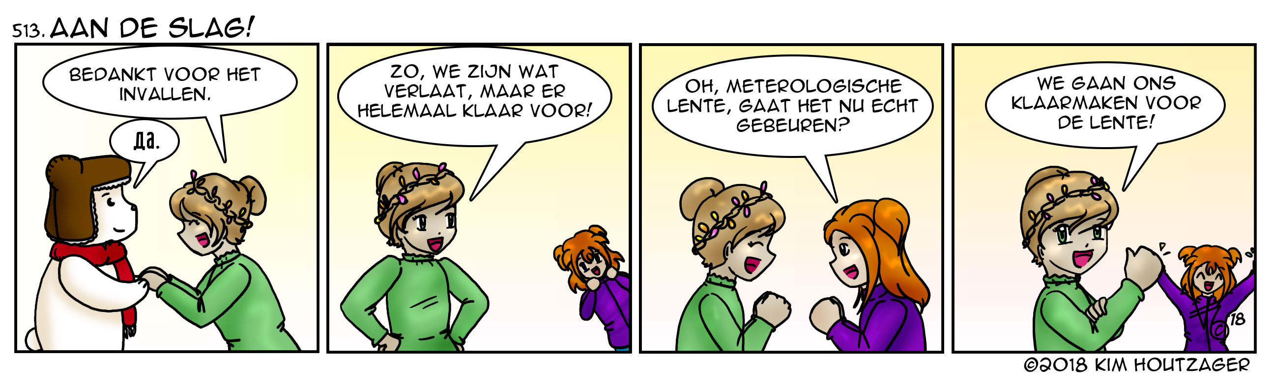 Kim: ‘We hadden afgelopen week bijzonder bezoek: ‘De Siberische Beer’. Een koude luchtstroom die niet alleen de temperatuur liet dalen, maar ons ook een dag of twee ijspret bezorgde. Het bezoek was echter van korte duur en het kwik schiet al weer omhoog. Zijn we er klaar voor? Ik kan niet wachten! Kom maar op, Lente!’