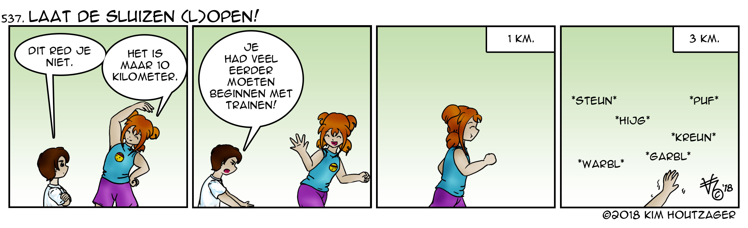 Kim: ‘Als het zo makkelijk was… deed iedereen het wel! Hardlopen is niet voor niets een wedstrijdsport. Er gaat vaak maanden voorbereiding aan vooraf. Door de hete zomer was het niet altijd even makkelijk om te blijven hardlopen, maar nu het afkoelt, gaat men er weer voor! Over 2 weken (9 september) is de Sluizenloop er weer. Ga je zelf niet mee rennen? Het is ook een hele sport om supporter te zijn!’
