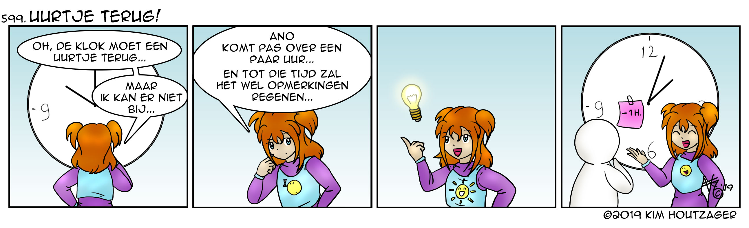 Kim: ‘Twee keer per jaar moet je weer nadenken… hoe werkt deze klok ook al weer? Mobieltjes en computers doen het vaak al vanzelf, maar die ovenklok… hoe verzet je die ook al weer? Of die enorme projectieklok? En zo lang die niet goed staat… zal iedereen die er langs loopt er wel een melding van maken. En deze oplossing… werkte verbazend goed.’