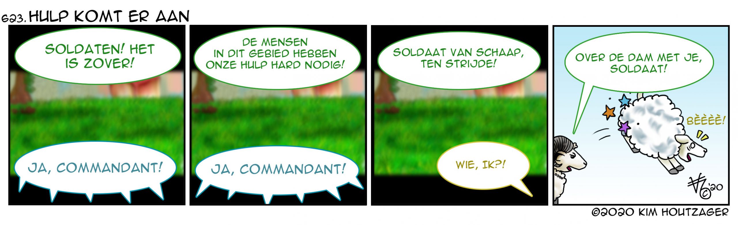 Kim: ‘Hoewel wij nog binnen zitten, wordt er buiten hard gewerkt. Zouden ze genoeg afstand houden? Ach, die grap is al zo vaak gemaakt. Welkom terug, schapengrasmaaiers van Nieuwegein. Hopelijk trekken jullie niet te veel bekijks.’