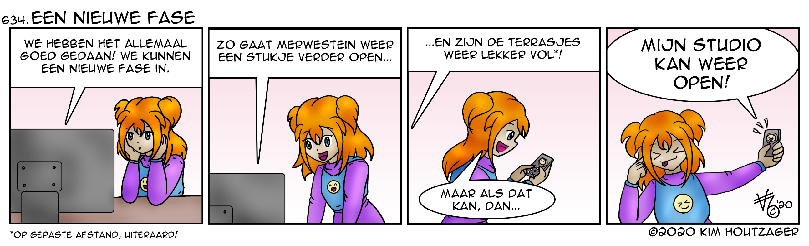 Kim: ‘We gaan de goede kant op! Door afstand te houden en goed op elkaar en onszelf te letten, mogen we de volgende fase in: een fase van meer mogelijkheden. En dat geldt niet alleen voor de winkels, maar ook voor mijn eigen studio! Ik heb mijn studio anders ingericht, een heel protocol opgesteld en de hoeveelheid leerlingen gehalveerd. Was het veel werk? Ja! Maar ik kan ten minste weer les gaan geven! Welkom bij de heropening van mijn studio!’