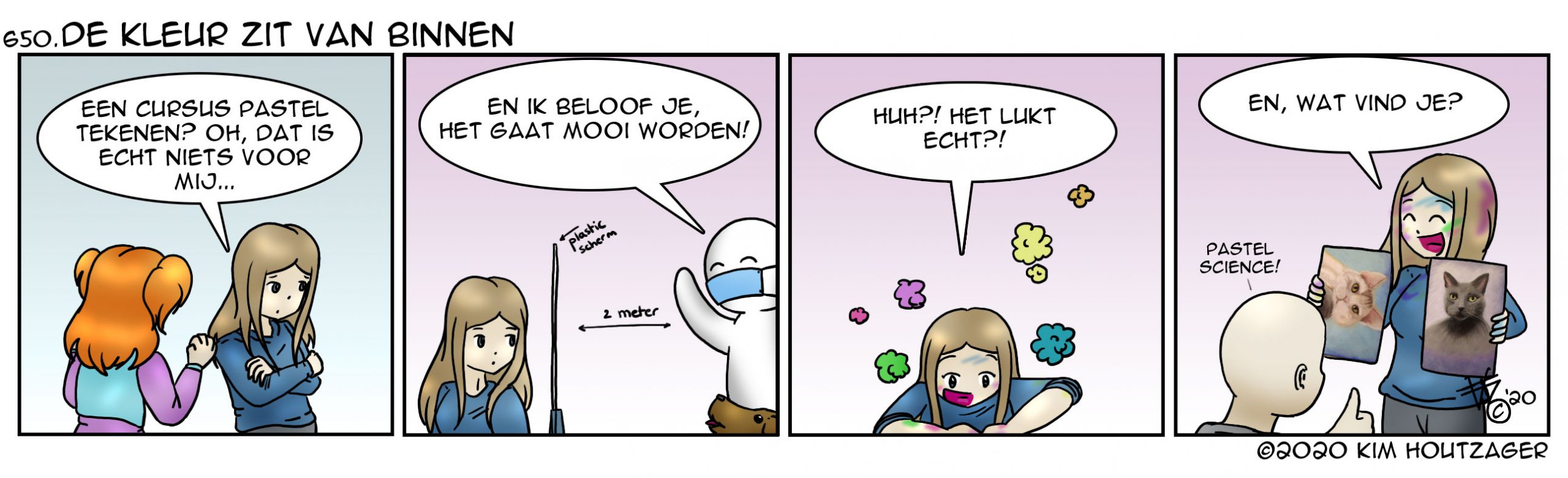 Kim: ‘Het was al lang geleden gepland en eindelijk kon het doorgaan: een workshop pasteltekenen. Ik ging er sceptisch naar toe: ik heb al vaak pastel geprobeerd en het is niets voor mij. Of misschien toch wel? Pastellum (https://www.pastellum.nl/) heeft mij laten zien dat het niet aan mij lag… maar aan mijn materiaal! Thuis heb ik hard pastelkrijt en harde pastelpotloden. Blijkbaar ben ik beter met superzacht pastelkrijt. Bedankt voor deze les! Ik ben niet alleen wat wijzer, ik ben blij en trots op het eindresultaat!’