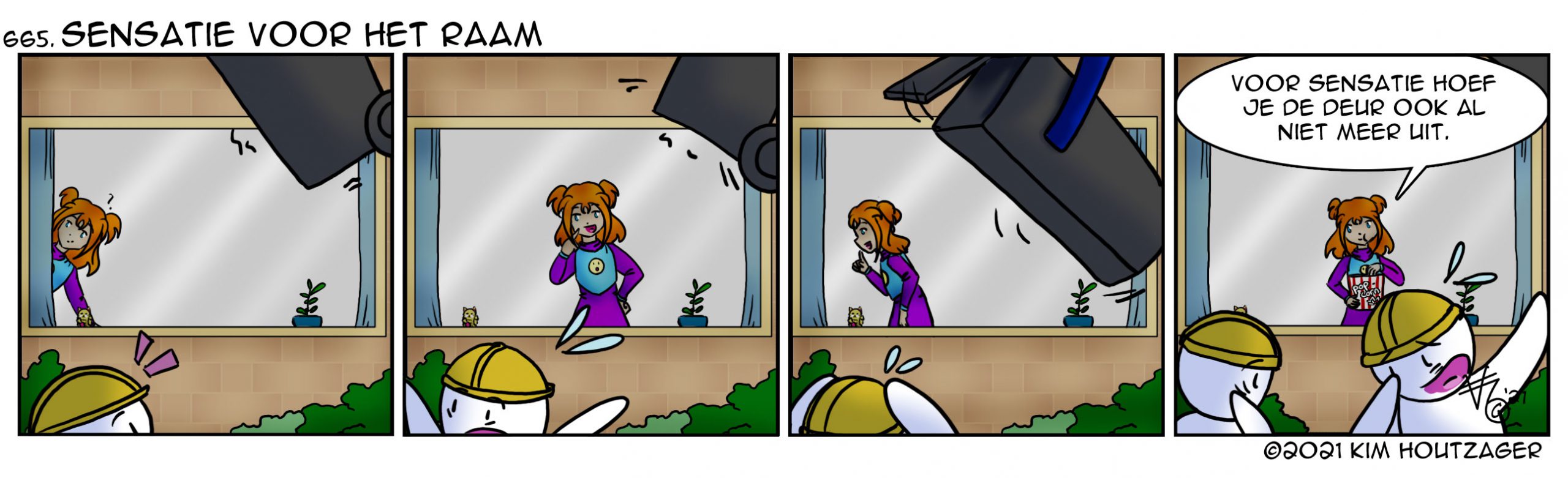 Kim: ‘We zitten nu heel veel binnen. Toch staat de wereld buiten niet stil. Zo had de vuilniswagen vorige week pech… pal voor mijn deur! Na het legen van mijn container, stond de boel stil. Ik had toch echt geen rare dingen in de container gedaan. Goed, hij was wat voller nu de PMD er ook bij mag, maar niet zo vol dat hij daarom voor panne zorgde… of wel soms?’