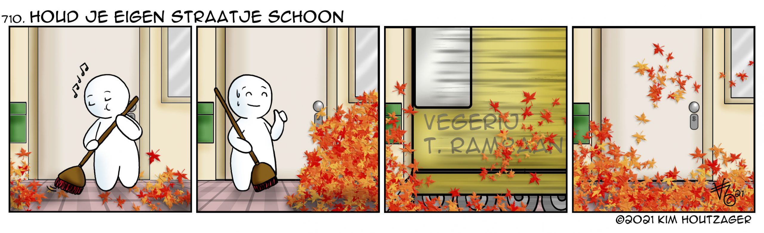 Kim: ‘Het einde van het jaar nadert en vele bomen hebben hun blad verloren. Maar waar blijft dat blad dan? De meeste huizenbezitters vegen hun eigen straatje schoon en de gemeente veegt de openbare gebieden. De trambaan moet ook geveegd worden en ik vraag me dan altijd af… waar blijven die bladeren?’