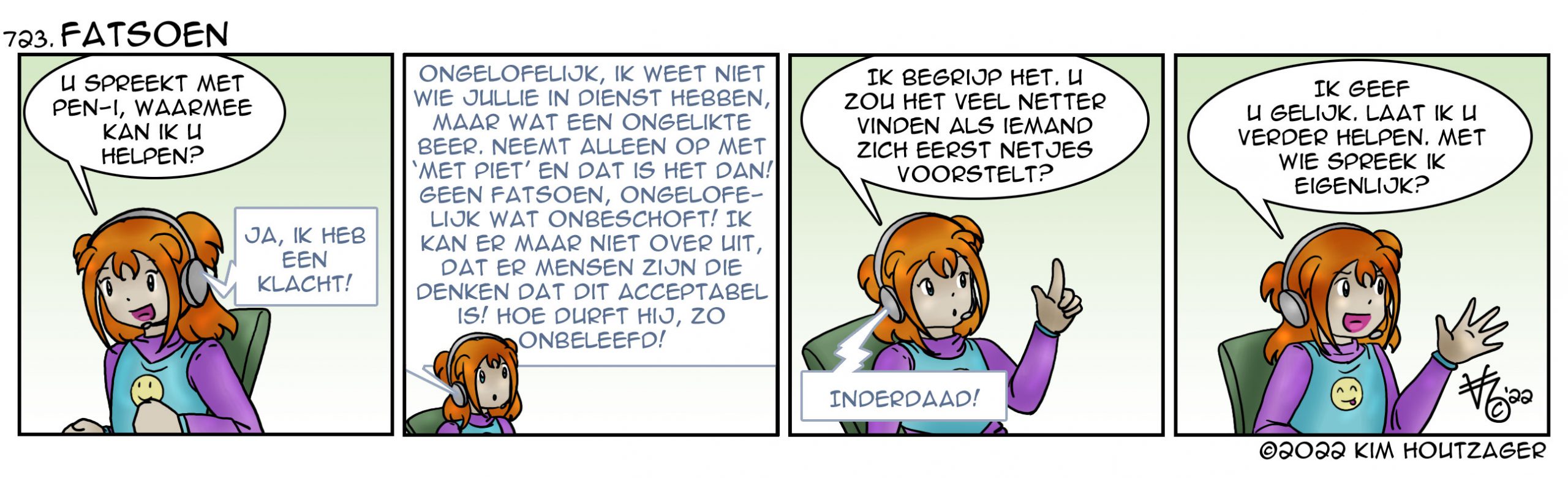 Kim: ‘Bijna iedereen heeft wel eens een klantenservice moeten bellen. In veel gevallen bel je omdat er iets niet goed is gegaan. Het lijkt soms alsof de bellers vergeten dat degene aan de andere kant van de lijn geen idee heeft waar het over gaat, totdat je ze van deze informatie voorziet. Dan kunnen ze de gegevens erbij pakken en kunnen ze je pas echt van dienst zijn!’