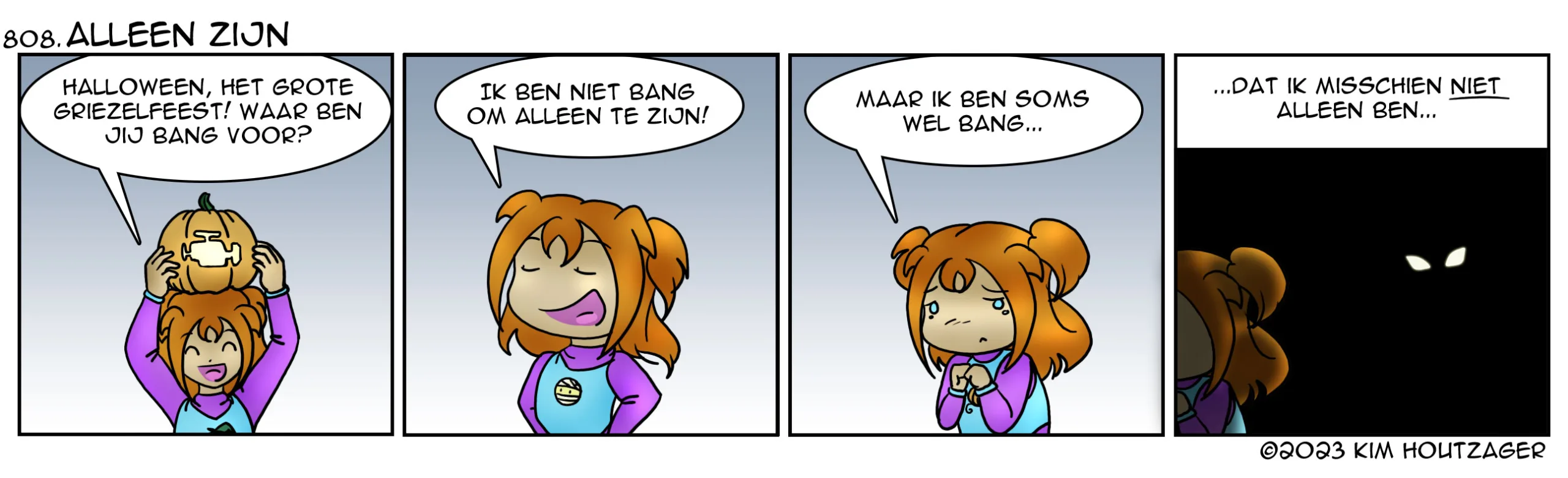 Kim: ‘31 oktober… Allerheiligenavond, beter bekend als Halloween. Ontstaan in Europa, overgewaaid naar Amerika en nu weer terug in Europa. Van rapen naar pompoenen… dit griezelfeest heeft een rijke geschiedenis. Verkleden, snoepen… wat vind jij het leukste aan Halloween?’