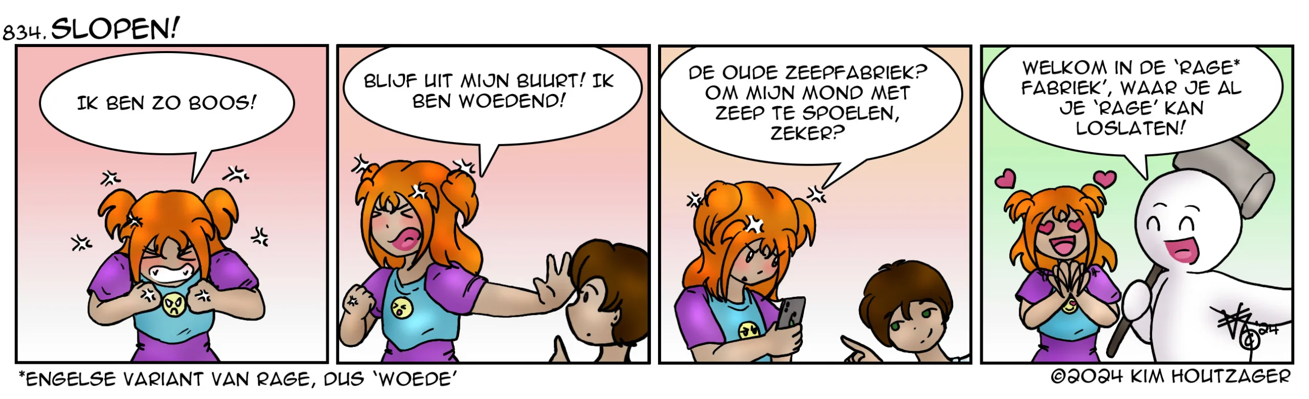 Kim: ‘Soms zijn we zo boos… dan willen we het liefste iets slopen. Nou, dat kan eindelijk in Nieuwegein! De oude zeepfabriek heeft een nieuwe bestemming gekregen. Er zitten nu allemaal kleine bedrijfjes in… waaronder de Rage Fabriek! Daar mag je lekker naar hartenlust slopen. Als dat geen teambuildingsoefening is…’