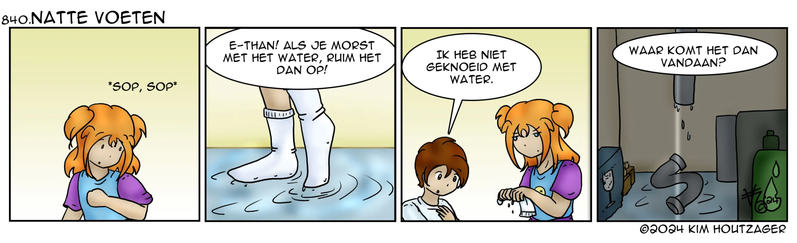 Kim: ‘Na een dag hard werken… was onze keukenvloer opeens nat. Ik dacht dat ik geknoeid had met water, maar hoe vaak ik ook dweilde… het was dweilen met de kraan open. Wat bleek… de zwanenhals in het gootsteenkastje was losgekomen. Wat een stress!’