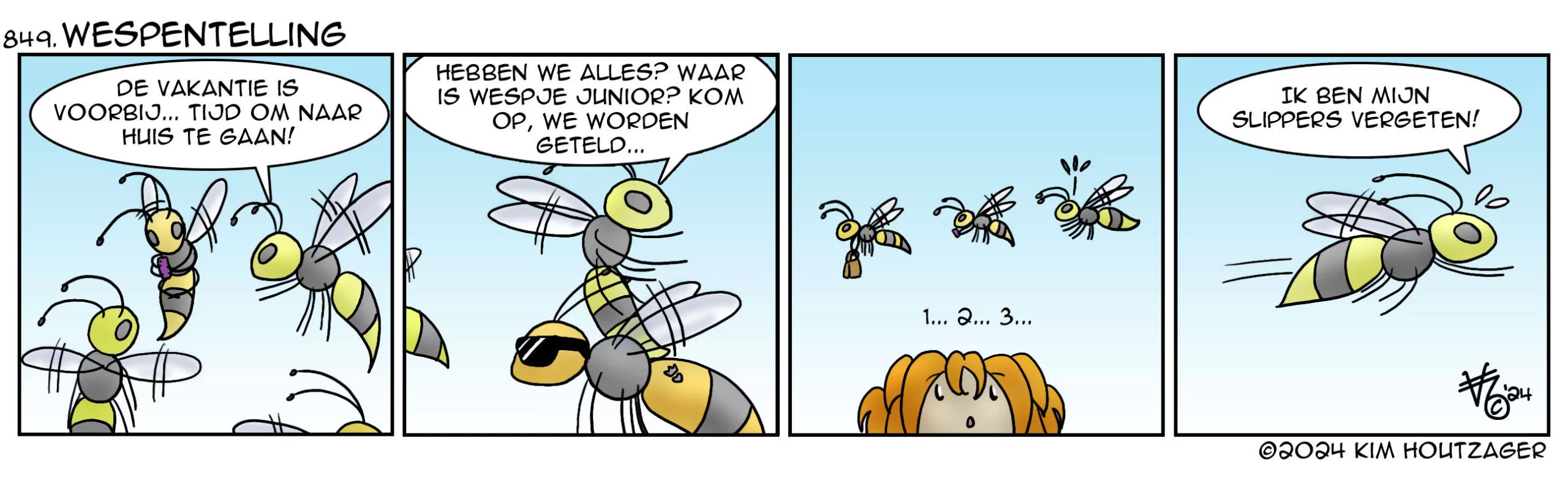 Kim: ‘Het einde van de vakantie komt naderbij en zowel mens als dier komt weer terug. Heb je even niets te doen? Doe dan mee aan de Wespentelling! Wespen zijn ondergewaardeerde wezentjes. Ze bestuiven de fruitbomen en eten muggen op. Maar hoeveel zijn er nu eigenlijk? En welke soorten bezoeken jouw tuin? Pak een drankje en een blaadje… en tellen maar!’