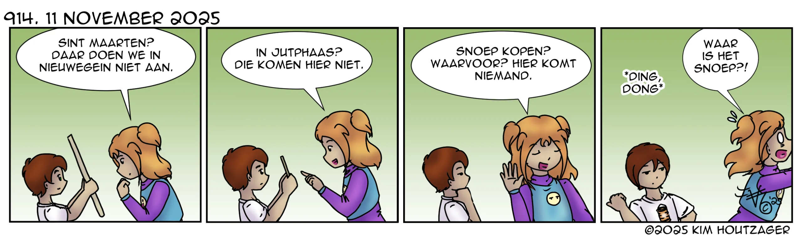 Kim: ‘De elfde van de elfde… veel mensen denken aan de opening van het carnavalsseizoen. Maar er is nog een feestdag: Sint-Maarten. Deze heilige staat bekend om het delen van zijn mantel met een bedelaar. In Nieuwegein wordt het niet groots gevierd, maar er zijn nog steeds mensen die stilstaan bij deze gebeurtenis. Voor kinderen is er een lampionnenoptocht en natuurlijk zingen voor snoep!’