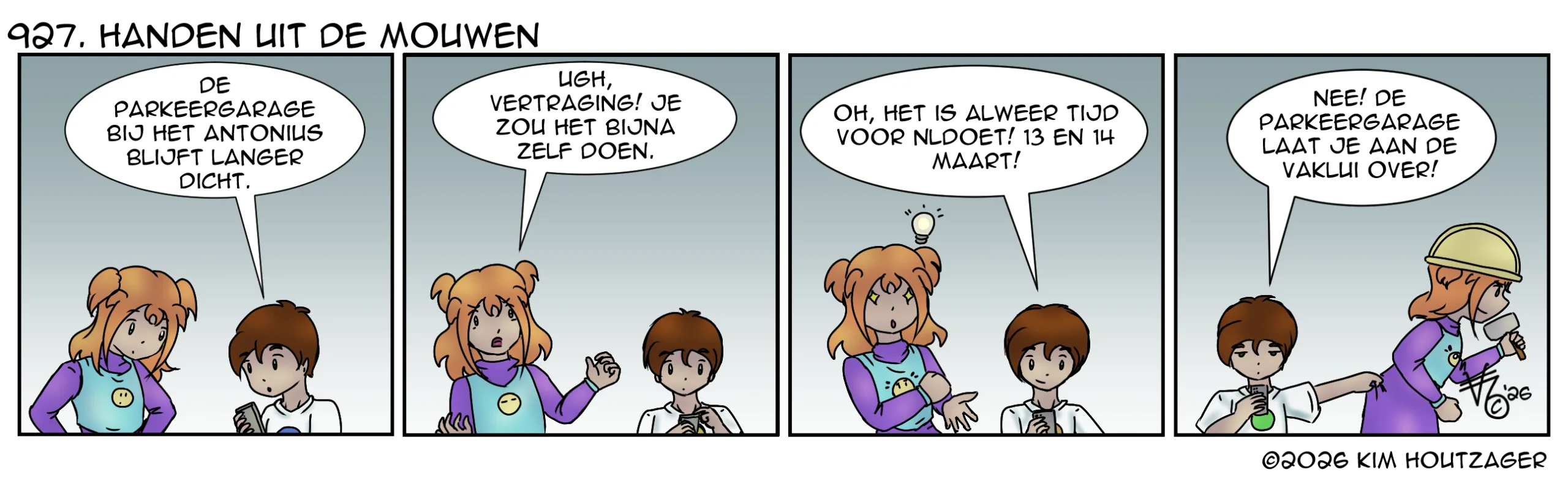 Kim: ‘Het is alweer bijna 2 jaar geleden dat de hellingbanen in de parkeergarage naast het St. Antonius ziekenhuis instortten. Wonder boven wonder waren er geen slachtoffers. Het herstel gaat voorspoedig, maar zoals vele grote projecten hebben we ook hier last van vertraging. Misschien combineren met NLdoet? Vele mensen zouden maar wat graag helpen.’