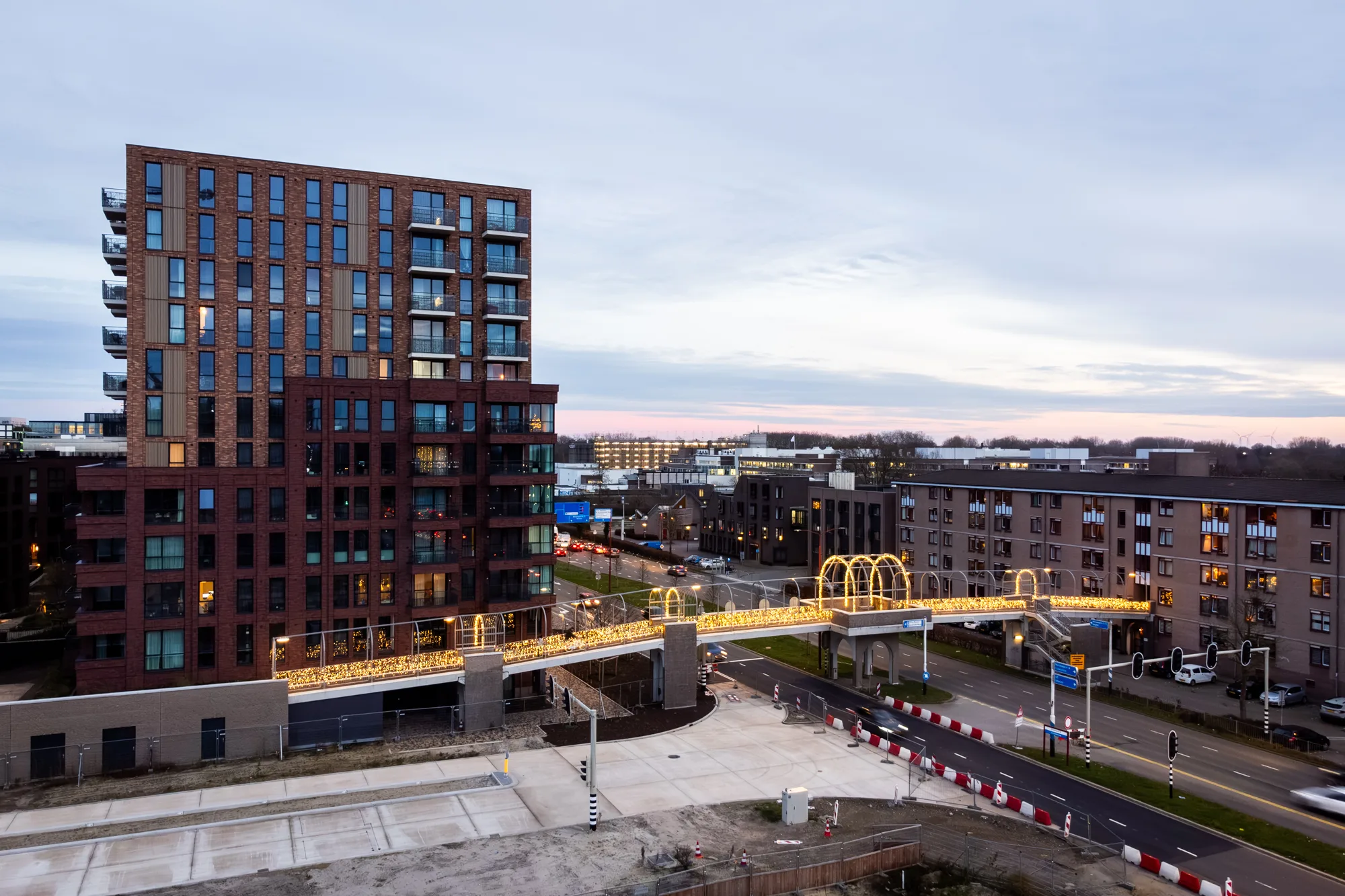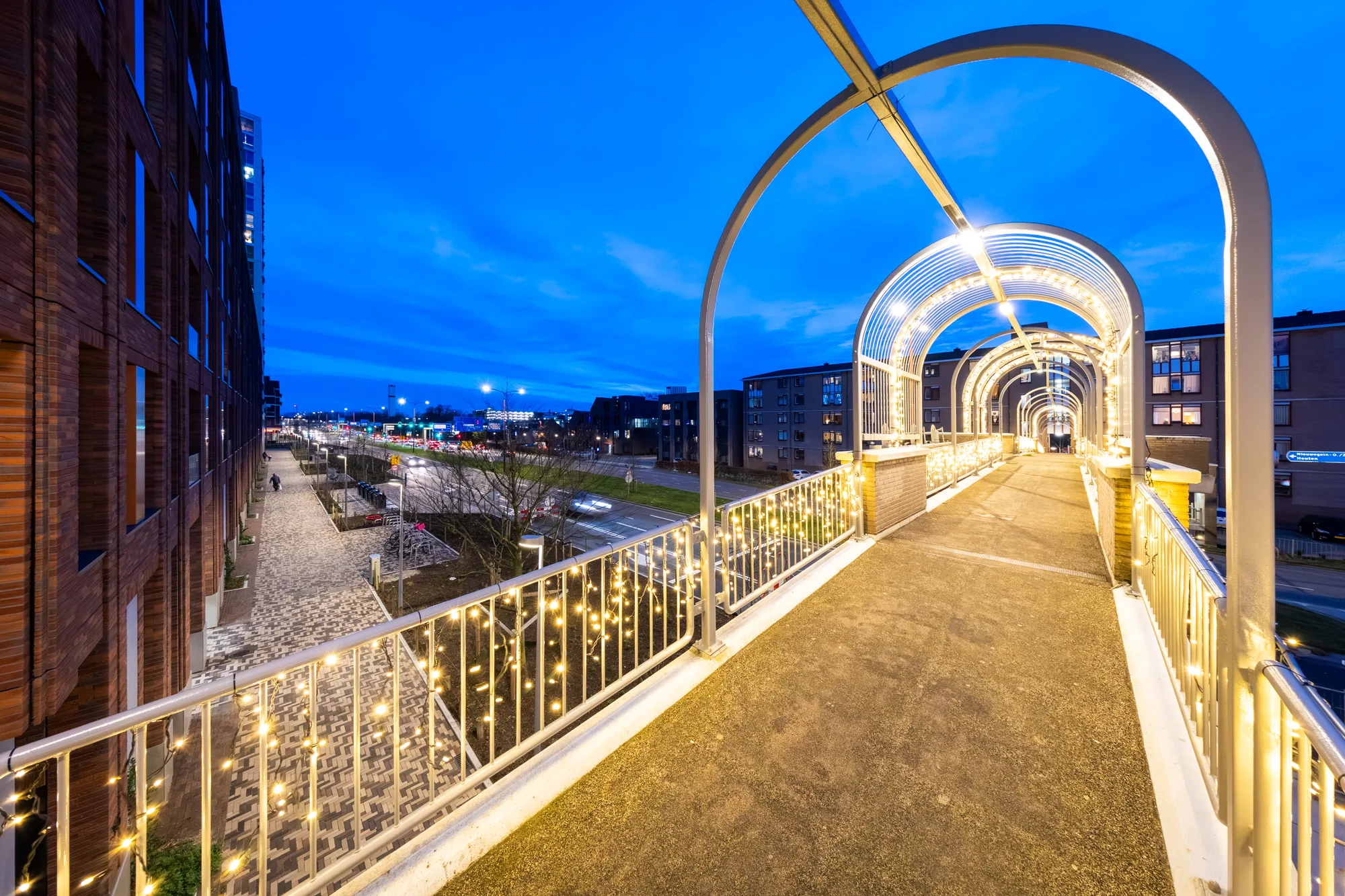 Om de heropening te vieren is de brug feestelijk verlicht, een cadeautje van City voor de bewoners. Zo is het ook in de donkere wintermaanden extra prettig om over de brug te lopen.