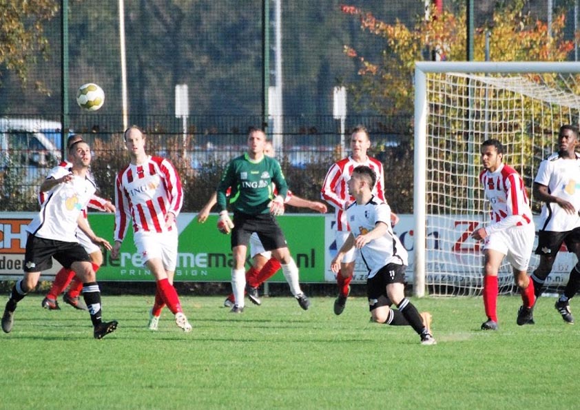 Bij de foto: Beeld uit een eerder gespeelde derby tussen SV Geinoord en JSV, die komend seizoen weer op het programma staat (foto Gerard van Vliet)