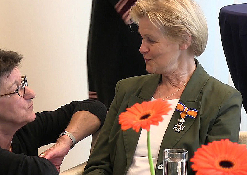 Mevrouw van der Post met haar onderscheiding
