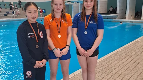 In de B-groep (14-15 jarigen) sprong Yuna Hulkenberg een goede 1 meter wedstrijd. Met een nieuw PR sprong ze zich naar de bronzen medaille. Tevens behaalde ze de norm voor TeamNL. Een prachtige prestatie! Op de 3 meter plank behaalde Yuna nogmaals een PR en een 5de plaats. Op de toren deed ze er nog een schepje bovenop. Ze behaalde hier een zilveren medaille.